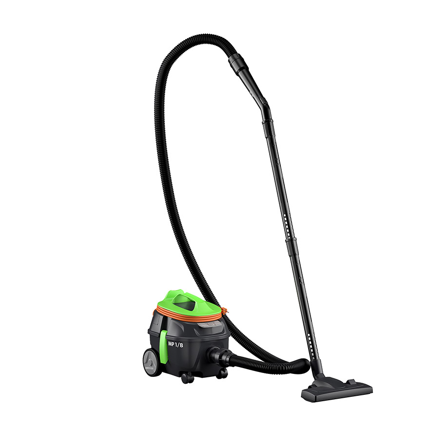 MP 1/8 è un aspirapolvere compatto, ideale per la pulizia di ambienti di piccole dimensioni. Il suo design leggero e dalle forme squadrate ne facilita la maneggevolezza, mentre la maniglia ergonomica consente di trasportarlo in maniera pratica ed affidabile. Il pedale per l’accensione e lo spegnimento, azionabile con il piede, rende l’utilizzo pratico e immediato.